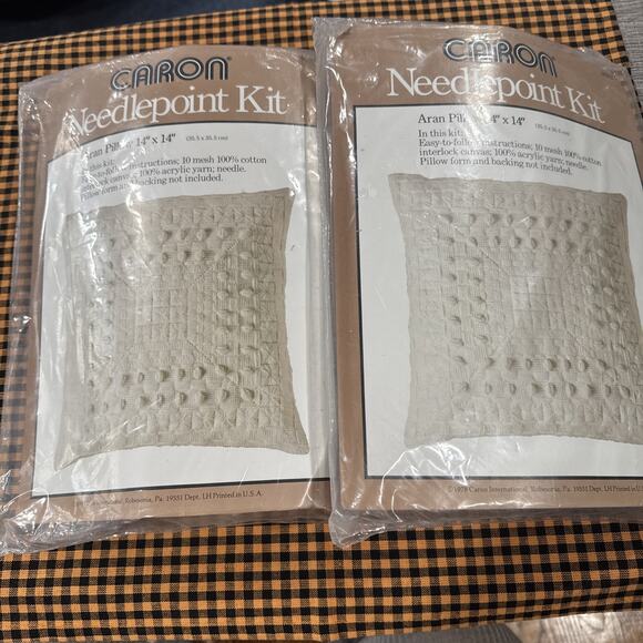 Sealed Packages Set Of 2 Aran Pillow Kit 14x14 Caron Needlepoint Kit 4692 VNT