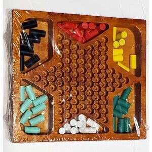 > Enjoy timeless strategy on the go with this sealed wooden Chinese Checkers game in a compact 5x6 inch travel size. Crafted with classic wood slats and vibrant pegs, this retro-style board is perfect for family game nights, road trips, or collectors of vintage-inspired games. The packaging is sealed and ready for gifting or play.