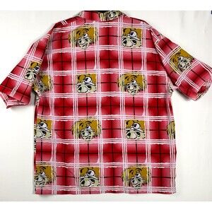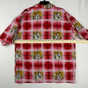 Seals Shirt Mens Large Urban Art cartoon Button Down Short Sleeve Red Check