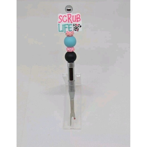 This Seam Ripper is decorated with silicone beads and a focal Scrub Life bread. It is perfect for your sewing needs and can help you with your cutting projects.
