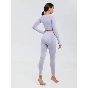 Seamless Long Sleeve Crop Top and Leggings Set Light Purple Size S
