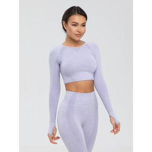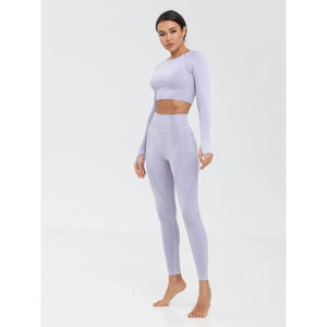 Seamless Long Sleeve Crop Top and Leggings Set in Light Purple. Women's Size S / Small.