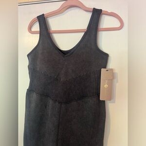 This sculpted seamless jumpsuit by Harmony and Balance features ribbed contouring through the waist for a supported fit. Designed in stretch knit, it streamlines with activewear utility.