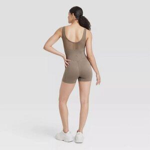 Seamless Short Active Bodysuit Fitness Workout Yoga Romper - JoyLab Gray M