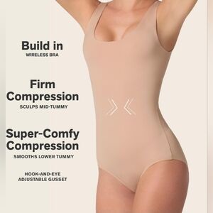 This tan shapewear bodysuit offers a seamless, form-fitting design with delicate straps and a scoop neckline. Crafted from a smooth, stretchy material, it ensures comfort and discretion under any outfit. Ideal for creating a sleek silhouette, this piece is a versatile addition to your intimates collection.