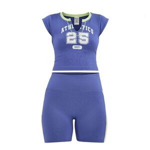 Seamless Crop Top & High-Rise Biker Shorts Graphic 2-Piece Set 2-Pack Size L