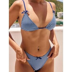 Seamoly Womens Small Gingham Tie Back Two Piece Thong Triangle Bikini Swimsuit