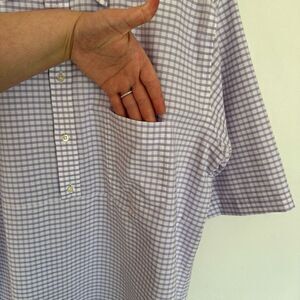 Seams by Sarah Women’s Pastel Purple and White Gingham 1/3 Button Polo Shirt Dre