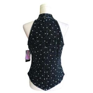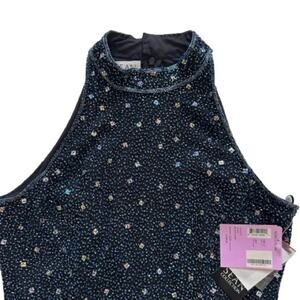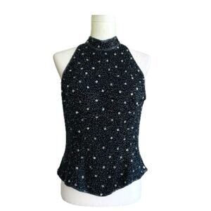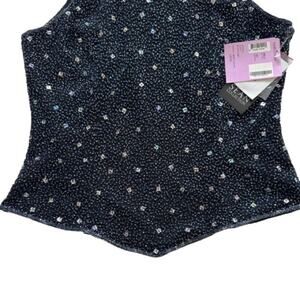Sean Black Blue Beaded Silk High Neck Sleeveless Evening Formal Top Large NEW
