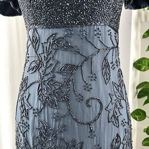 Sean Collection 100% Silk Steel Blue-Gray Beaded Embellished Evening Gown - Med