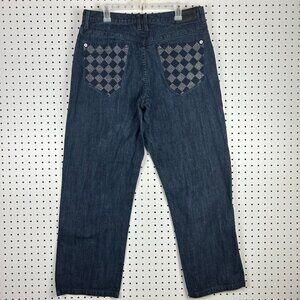 Sean John 90s Checkered Design Baggy Blue Jeans 36x32 Medium Wash Skate Street