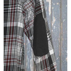 Sean John Boy's Shirt SZ M Black Plaid Button Up Elbow Patches Roll Tab Sleeves