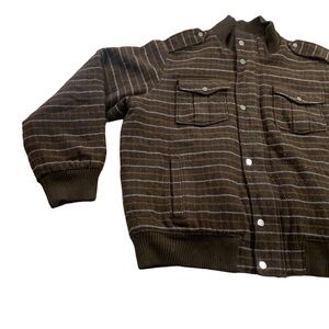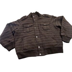 Sean John | Brown 3XL Button Down Jacket Thick Winter Pockets Details Tan Striped