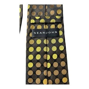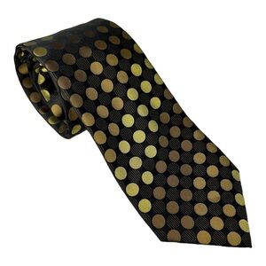 Sean John Brown Gold Polka Dot Tie Elegant Retro Style 100% Silk Mens Necktie