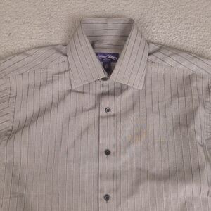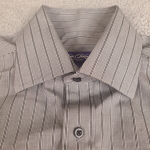 Sean John Dress Shirt Men's Large 16 32/33 Gray Striped Fine Tailoring Button Up