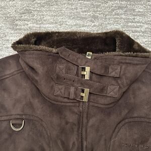 Sean John Jacket Mens 2XL Espresso Brown Faux Suede Bomber Faux Fur Lined Zip
