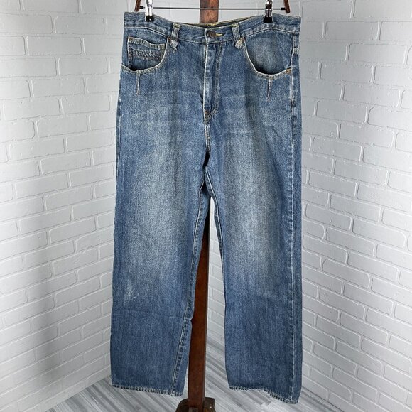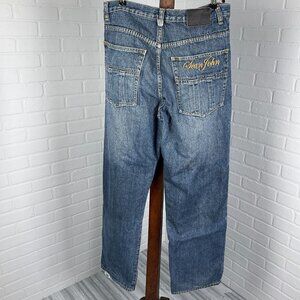 Sean John Jeans Men 34Wx33L Blue Relaxed Straight High Rise Distressed Denim