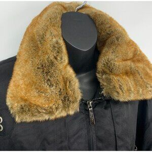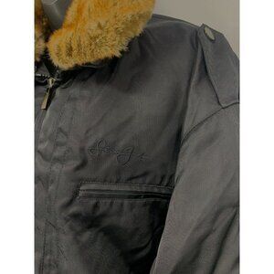 Sean John Men Bomber Jacket Size XXL Extra Extra Large Black Waterproof Zip Fur