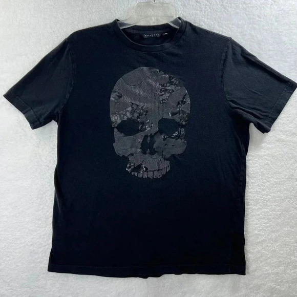 Sean John Mens Large Camo Skull Graphic T-Shirt Black 100% Cotton Dark Goth