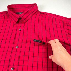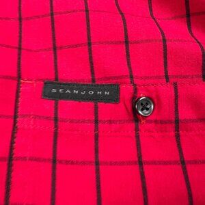 Sean John Mens Shirt 3XB Red Black Plaid & Button Down Shirt Cotton Poly Blend