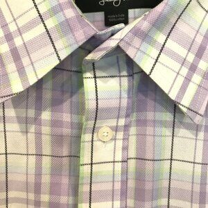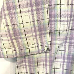 COLOR: Gray, lavender, lime, turquoise plaid.