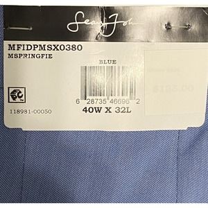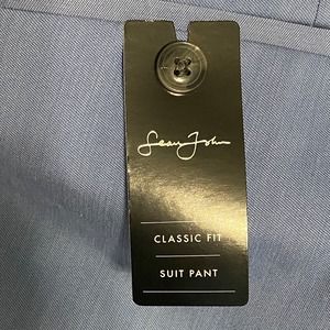 This listing is for new with tags Sean John Men's Size 40x32 Classic Fit Suit Pants Solid Blue. 68% Cotton, 29% Polyester, 3% Elastane, dry clean only.