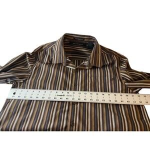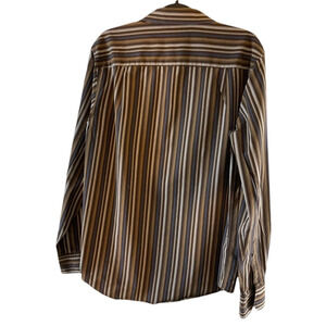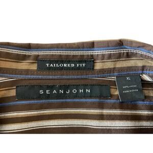 Sean John Men's XL Brown Tan Blue Shirt Striped Long Sleeve Tailored Fit Fall