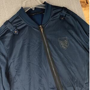 Sean John Performance Jacket Mens 3X Navy Blue Spell Out Street Zip Full Zip