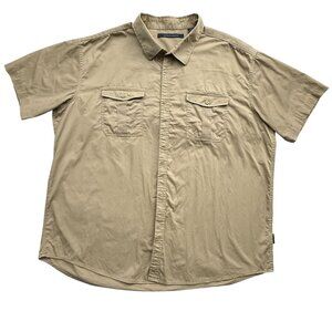 Sean John Shirt Men 4XB Tan Button Up Short Sleeve Cotton Stretch Pockets Casual