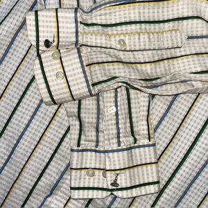 Sean John Shirt Men's 3XL XXXL Beige Check with Colorful Stripes and French Cuffs