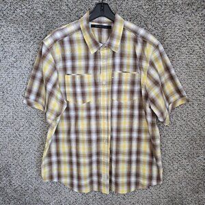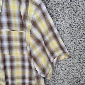 Sean John Shirt Mens 3XL XXXL Yellow Plaid Button Up Short Sleeve Cotton Casual