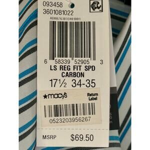 Sean John Striped Long Sleeve Shirt Size 17 1/2 Sleeve 34-35 Regular Fit NWT