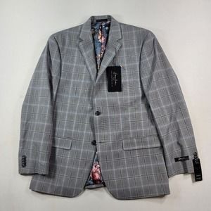 Sean John Suit Jacket Men's 40R Gray & Blue Plaid Classic Fit Blazar $360