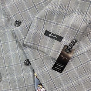 Sean John Suit Jacket Blazar Men's 40R Gray & Blue Polyester Plaid Classic Fit