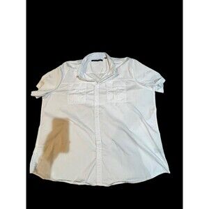 Sean John White Button Down Shirt 4XB, Trim Detail from Collar to Sleeve, 2 front velcro pockets, 60% Cotton, 40% Polyester.