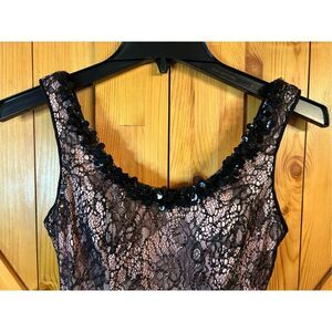 Sean Collection Lace Mini Dress Size 2 cup lined pink covered by black lace with sequence stretch pit to pit 15” length 32” 24” waist 32” hips (8318)