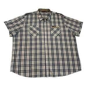 Sean John Mens Size 6XB Beige Striped Plaid Button Up Shirt Short Sleeve Shirt