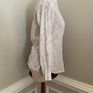 Seaplane Cotton Swiss Dot Split Neck Popover Long Roll Tab Sleeves Blouse XXS