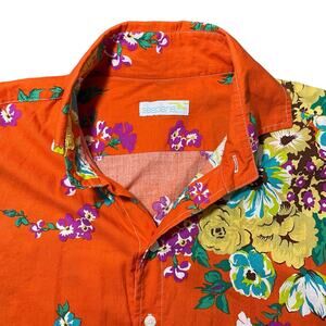 Seaplane Long Sleeve Button Up Shirt Orange Floral Print Extinct USA Size Small