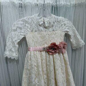 Searington Road Girls Cream Lace Dress with Pink Floral Sash Size 4T/4