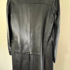 Soft and Supple, black, knee length, lined, leather jacket, gently worn, XS but fits more like a S.