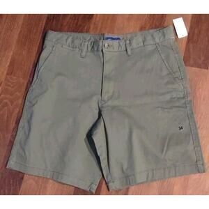 Sears Chino Shorts Men’s Size 34 Olive Green Flat Front Cotton Stretch Outdoors