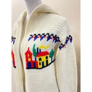 Sears JR Bazaar Vintage 70s Cardigan Embroidered Town Hooded Open Front Size M