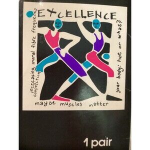 A throwback to the 80s and Olivia Newton John. Sears Excellence Tights in Marine Blue. Ultra Shiny. Light support stirrup. Size medium. These are 88% nylon, 12% Lycra spandex, exclusive of elastic waistband. Crotch lining 100% cotton. Machine wash, warm with like colors. Size chart shown in pictures.