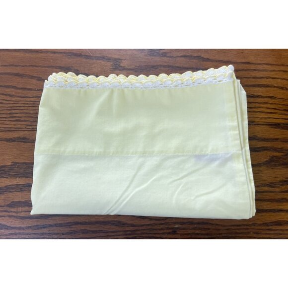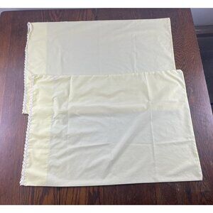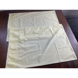 Sears Perma-Prest Pillowcase 2 Yellow w/ White Crochet Trim 42" x 36" Vtg READ