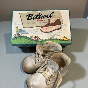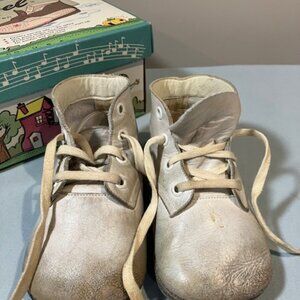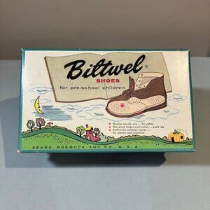 Pre-owned. Sears and Roebuck Shoe Box is in great vintage condition with wonderful nursery rhyme graphics. Shoes did not come with this box. They are Mrs. Davis Ideal Intermediate Shoes. Shoes certainly show some wear but aren't ripped or torn anywhere, just scuffed up.
