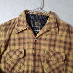 Sears Roebuck Mens Store Flannel Shirt Large VTG 80s 70s Button Up See Pics. Missing button on right cuff as seen in pictures.