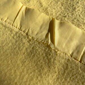 There are 2 spots along the edge where the silky edge is loose from the blanket. Does have pilling. Clean, no holes.
