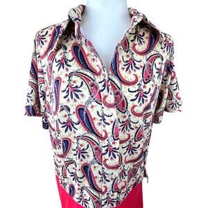 Sears The Shirt Dress Size 38 Medium Red Purple Paisley Midi Vintage Retro