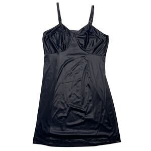 Vintage 80s Sears Black Non Cling Satin Slip Dress